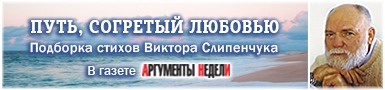 24.09.2025Газета «Аргументы Недели» (№38(986), 24 - 30 сентября 2025 г.) поздравила Виктора Трифоновича Слипенчука с днём рождения и опубликовала подборку его стихов.