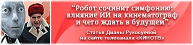 Читать здесь. 19.09.2025«Робот сочинит симфонию: как искусственный интеллект влияет на кинематограф и чего ждать в будущем». Статья Дианы Рукосуевой на сайте телеканала «КИНОТВ».