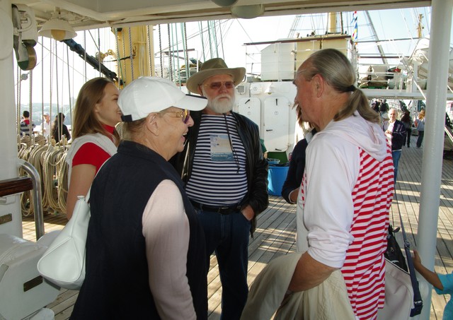 В.Т., Г.М. и Михаил Слипенчук на трапе парусника